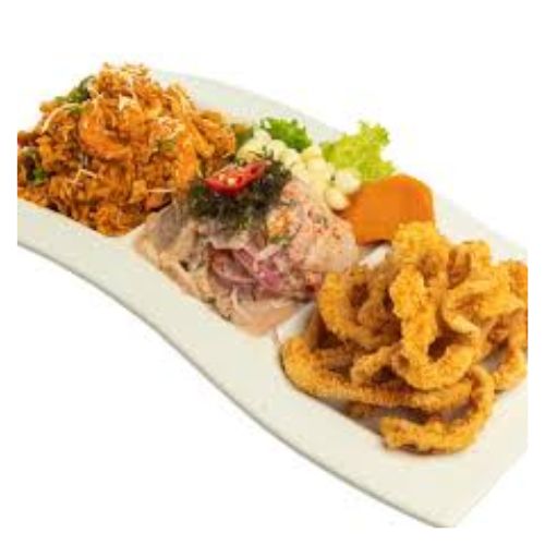 El festín perfecto para los amantes del mar. Incluye ceviche, arroz con mariscos y chicharrón de calamar, una combinación que brinda frescura, sazón y crocancia en cada bocado..